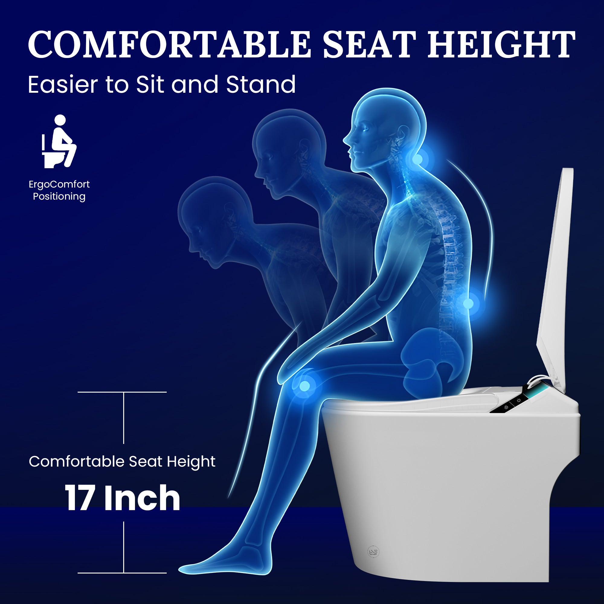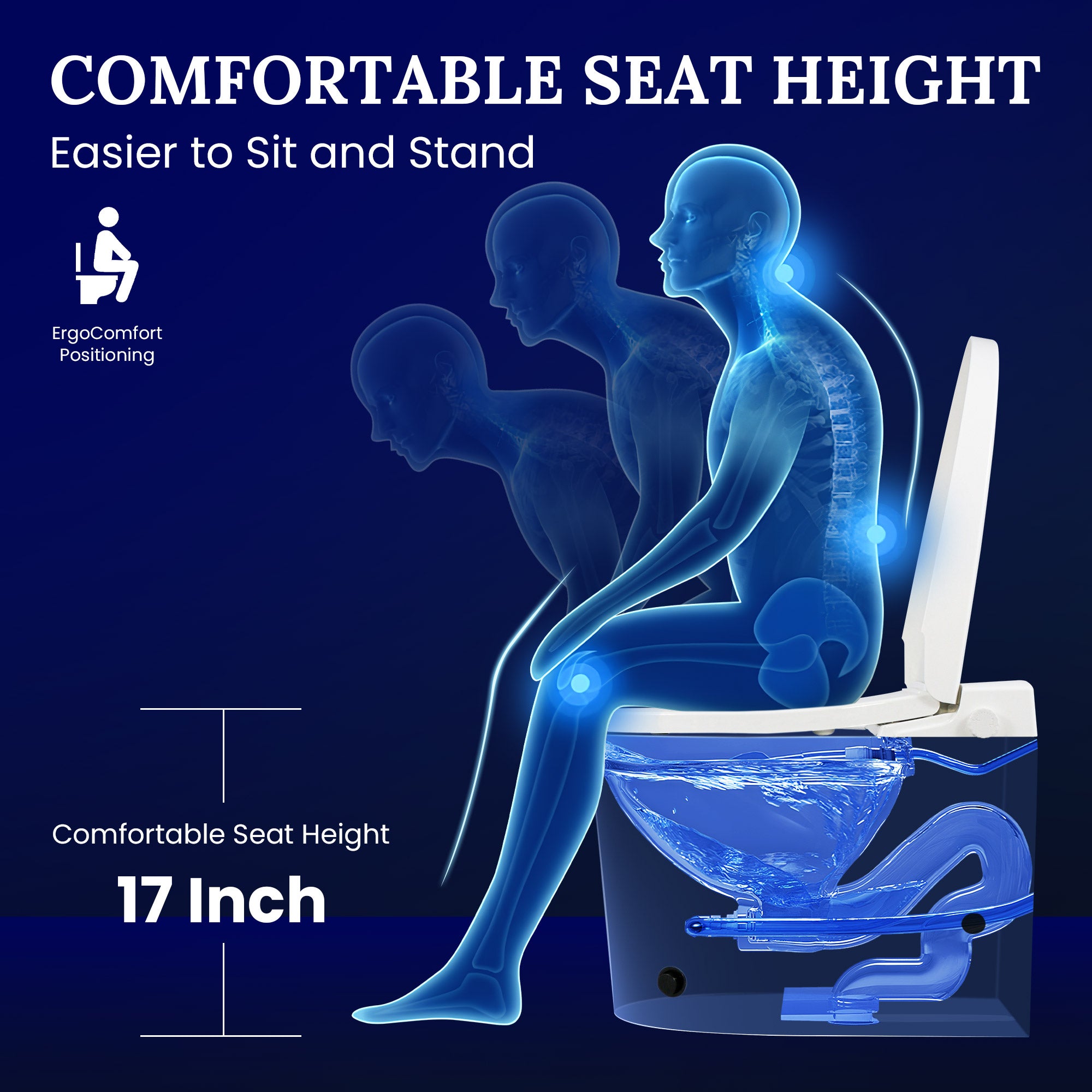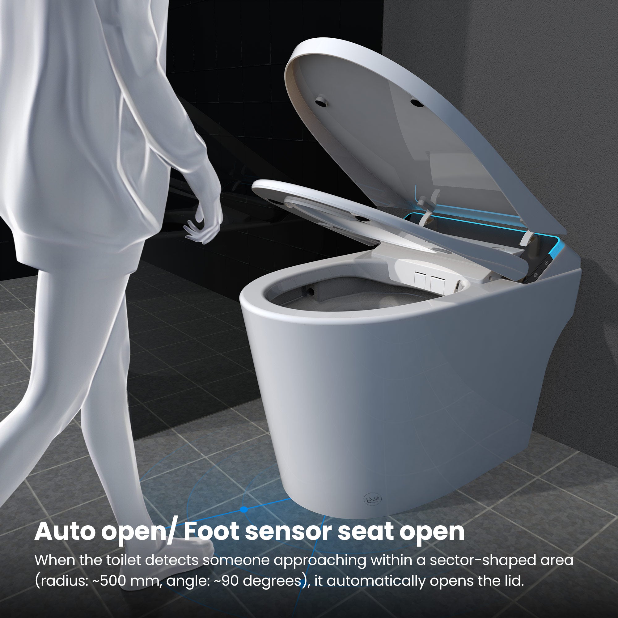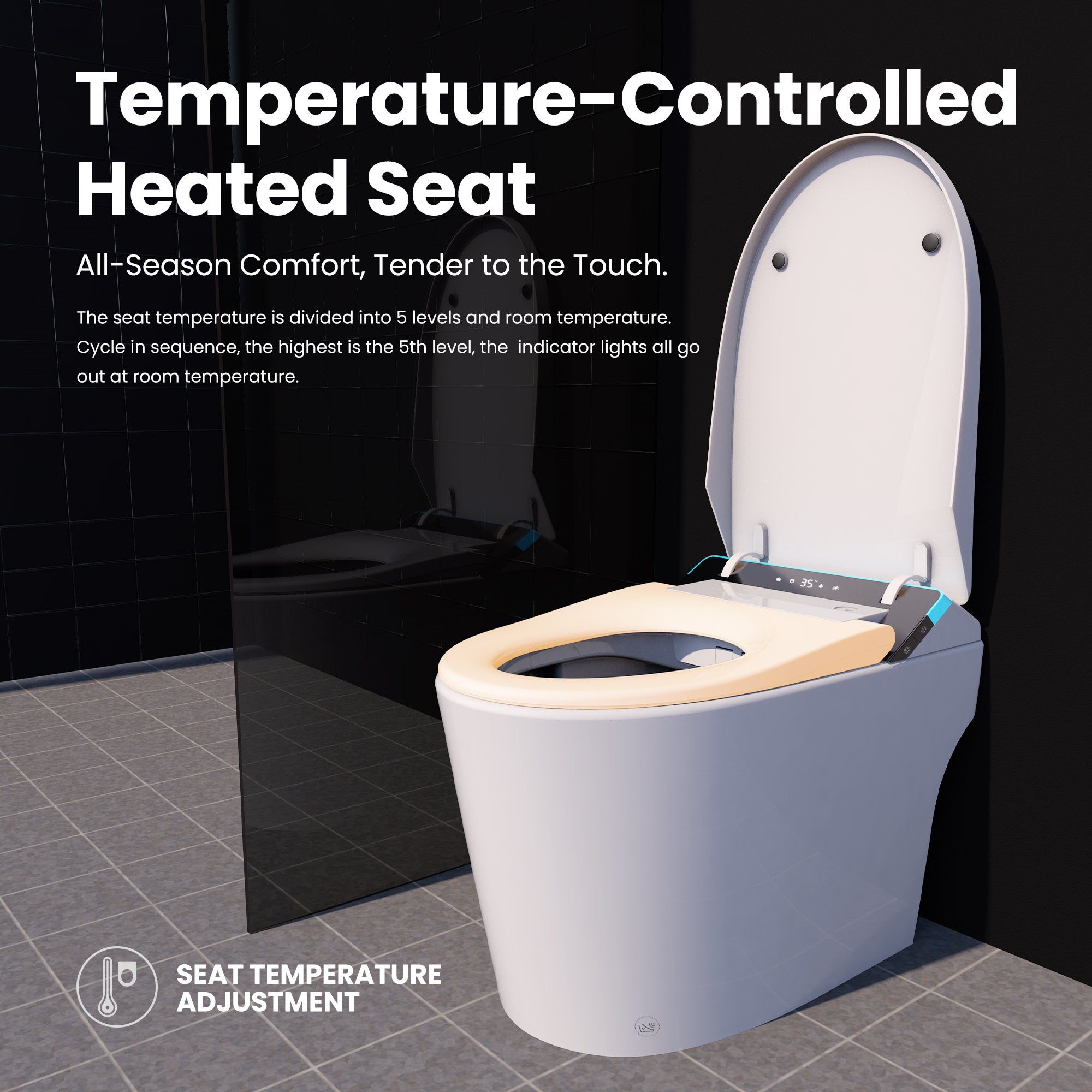 Smart Bidet Toilet with Heated Seat & Auto-Flush System - Foot Sensor Control, Adjustable Wash Modes, Built-In Water Tank for Low Pressure Homes
