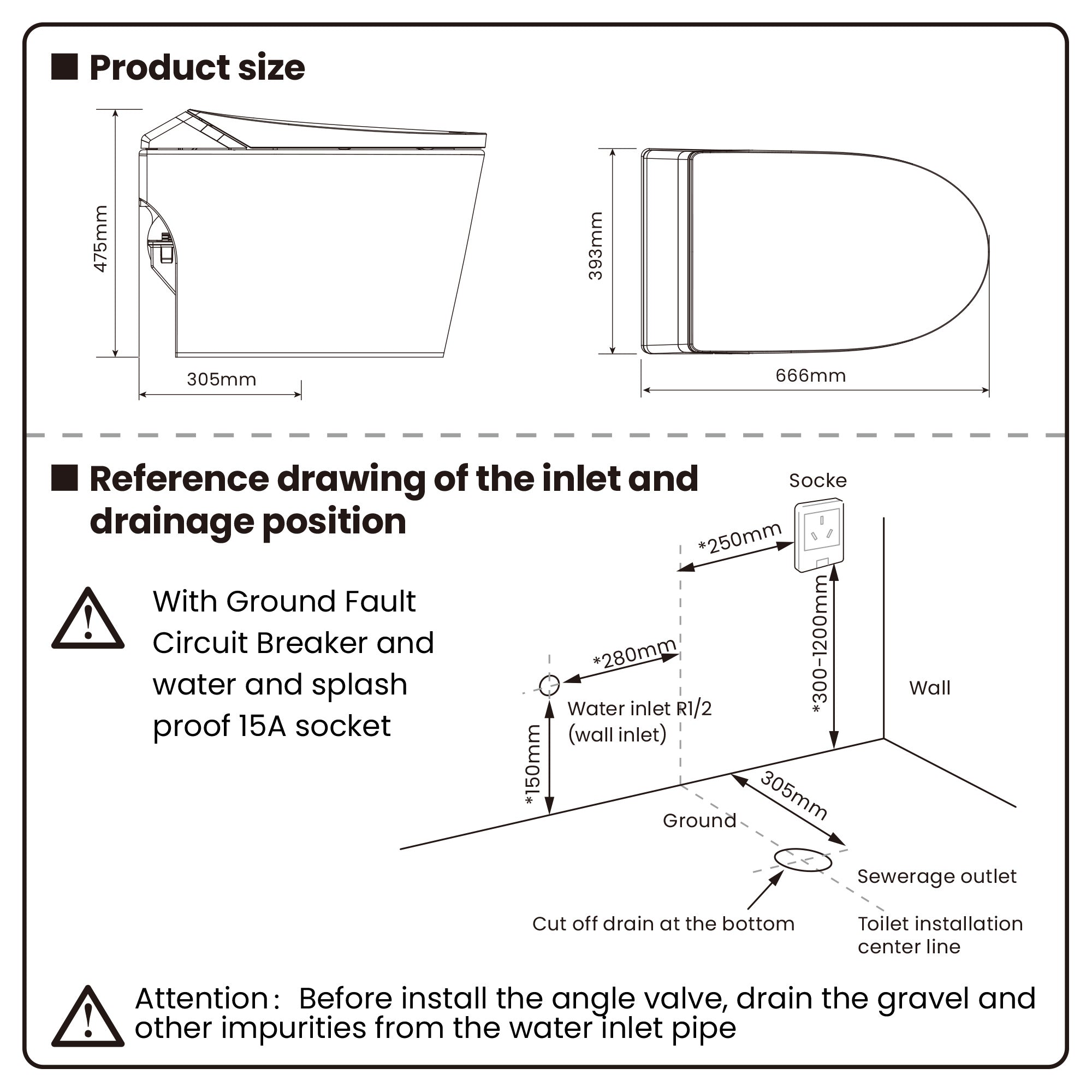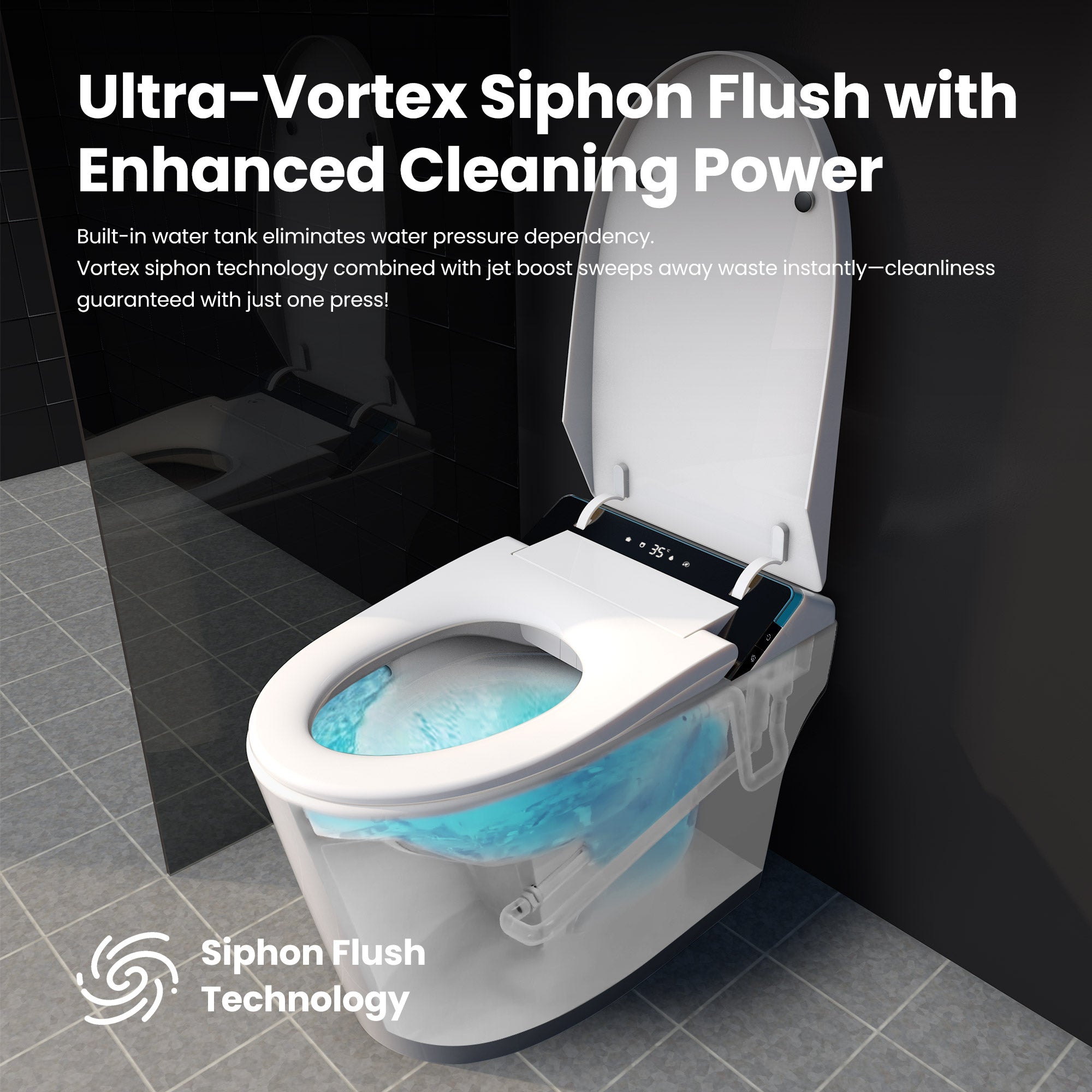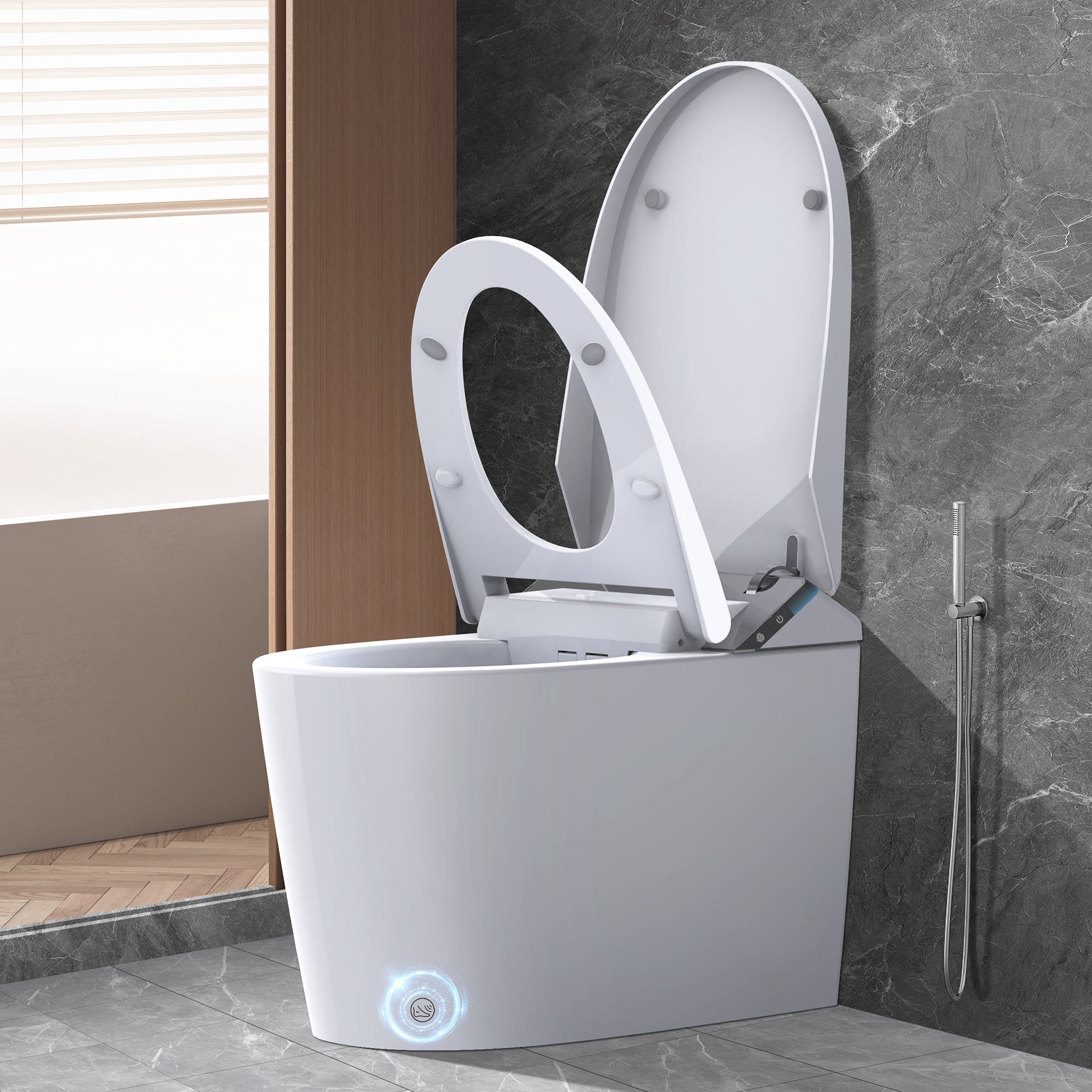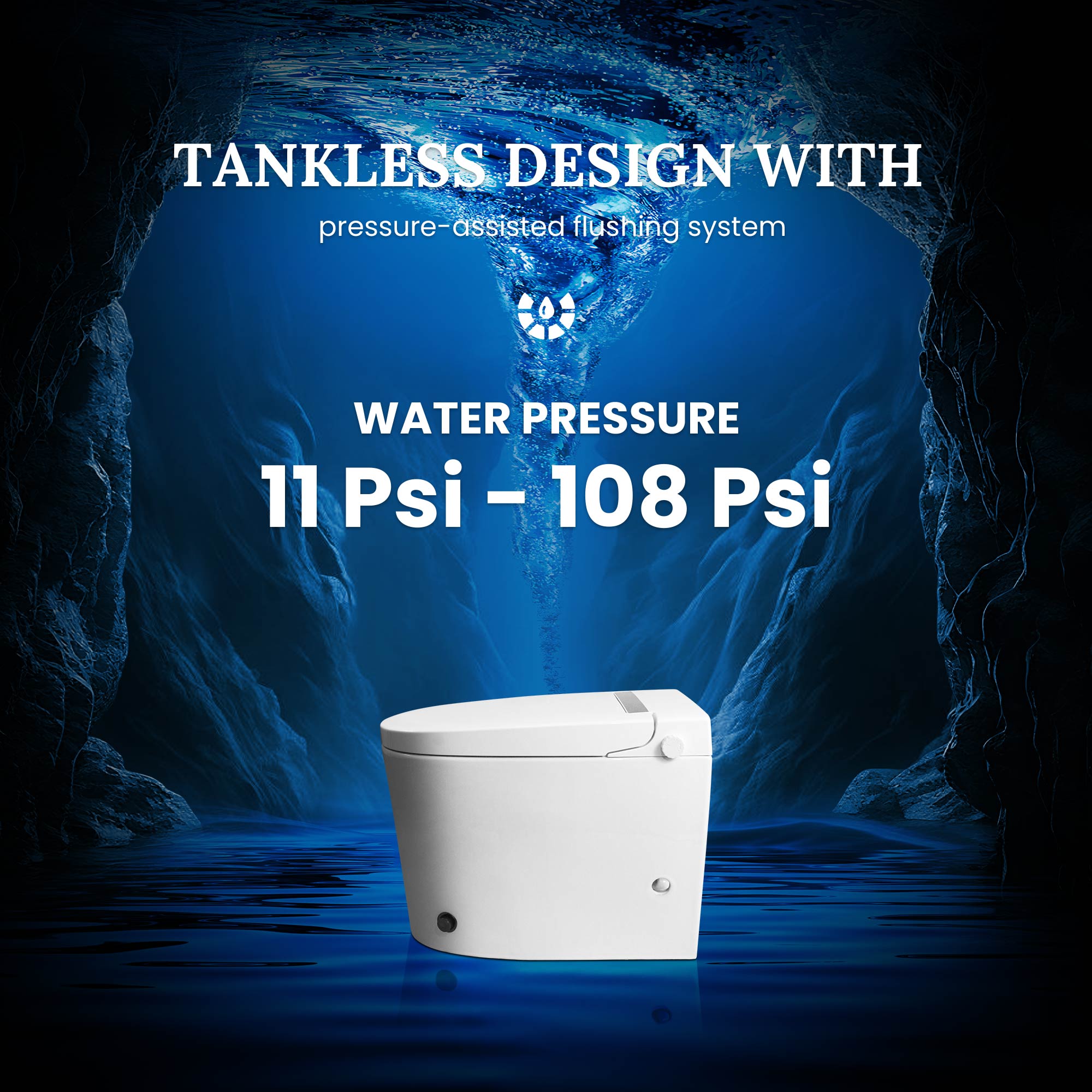 Smart Bidet Toilet with Heated Seat & Auto-Flush System - Foot Sensor Control, Adjustable Wash Modes, Built-In Water Tank for Low Pressure Homes